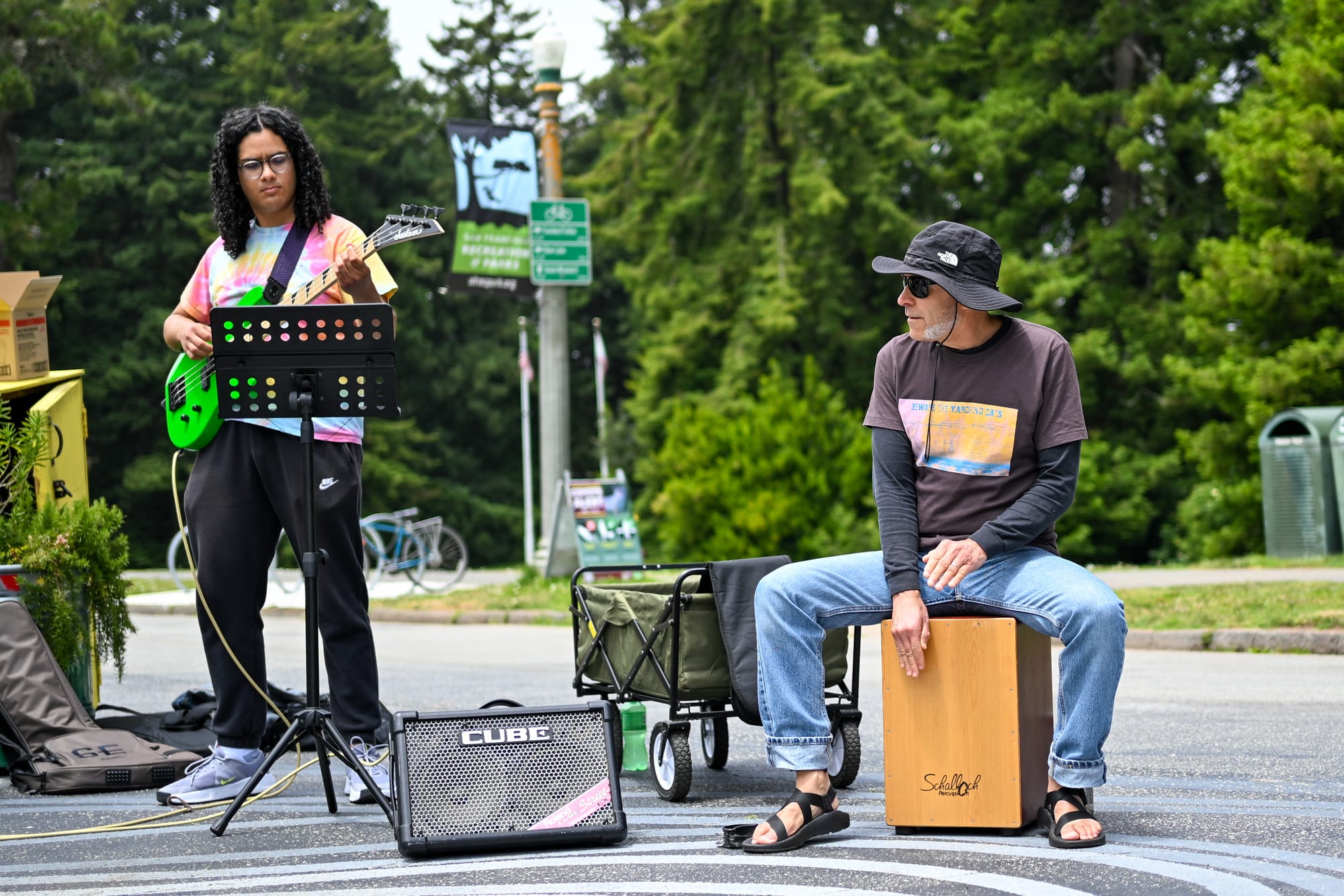Santiago came in off the street, mixing old and new with his rendition of the son jarocho tune "El Siquisiri" on electric guitar. Brian leaned into the cheesiness of his "Don't Go Breaking My Heart" duet with Binh, a newish regular. Emma served vocals and sun protection in a wide-brimmed straw hat with her soulful performance of "All My Loving". When it was time for the chorus of Weezer's "Say It Ain't So", everyone in the crowd instinctively joined in.